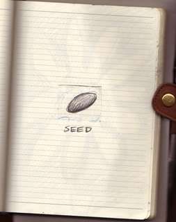I first had the idea to make a book about transformations while walking at the beach (as I do for so many of my books). I opened my journal and drew a picture of a flower. Then, in the page just before the one with the drawing, I cut a rectangular hole so that only the oval center of the flower showed through. On that page I jotted the word, “seed.” On the page with the flower, of course, I jotted the word “flower.”
