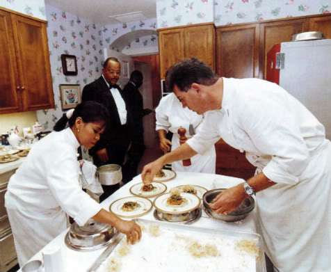Over in the West Wing, there is a Mess Kitchen, run by the U.S. Navy, where food for White House staff and visitors is prepared.