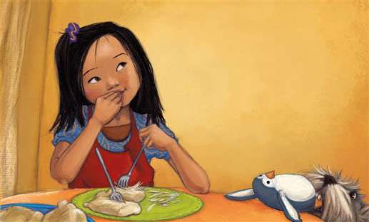 Wearing Mama’s red apron, Cora finally gets to do grown-up jobs, like soaking the noodles and shredding the chicken. She lines up the vegetables while Mama slices them. Best of all, she gets to stir everything together in the big pancit pan. It looks and smells so good. But what will her siblings say when they find out she did their jobs? And will they like Cora’s pancit?