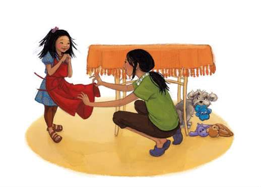 I love the mother/daughter bond in the story, and children will likely appreciate how special Cora feels, as the youngest of four, to have Mama all to herself. The red apron is also a very nice touch — Cora learns it originally belonged to Lolo, her grandpa, who grew up in the Philippines and cooked for farmworkers in California.