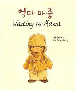 WAITING FOR MAMA by Lee Tae-Jun, pictures by Kim Dong-Seong (North South Books, 2004). This haunting, poignant little tale, set in 1930’s Korea, features a small boy waiting at a streetcar station for his mother to arrive. It’s winter, and the boy seemingly waits a long time, in the cold and snow, as conductors on arriving streetcars answer his question about the whereabouts of his mother with a matter-of-fact, “Do I know your Mama?” The pastel and pencil illustrations, rendered in subdued ivories, browns and olives, enlarge the story, which is told in Korean Hangeul alongside its English translation. The boy is a paragon of patience, so tiny on the platform amongst other travelers, so alone in a big world. The final double page, wordless spread shows the boy and his mother walking home hand in hand in the midst of a blizzard. The story seems simple, but it’s capable of stirring deeper emotions, primarily because of the illustrations (the story was originally published in a newspaper in 1938).