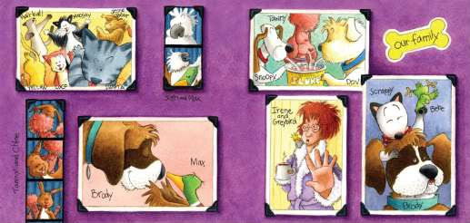 Everyone here at alphabet soup couldn’t be happier, cause we’re all quazy about Max, Brody, Dakota, Bebe and the whole raucous menagerie living at Irene’s. Seems like just yesterday we first heard Max knocking on Irene’s door (Duck at the Door, 2007), seeking shelter one winter’s day after the rest of his flock migrated South. Once he learned to use the remote control, discovered his flair for cooking, and made himself happily, quackily at home, he endeared himself not only to Irene and her resident dogs, cats, birds and rabbits, but to readers all over the world.