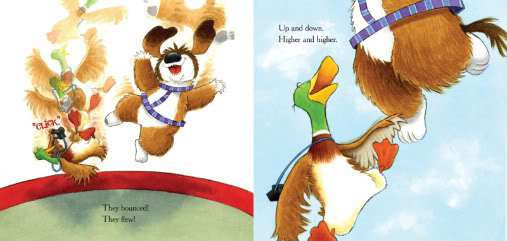 But it’s all such good fun, and Urbanovic’s lively narrative, supported by her riotous, exuberant, flying-off-the-page illos, captivate the reader from beginning to end. The high-voltage energy is punctuated by a raft of great sound words: WHOOMP! CLICK! SMACK! YIPEEEEE!!, a sure-fire formula for an exciting, suspenseful, giggle-inducing read aloud.