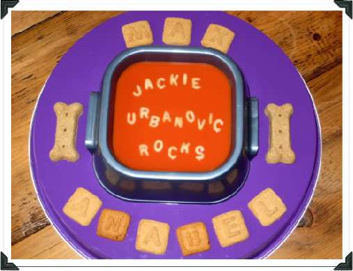 So, are you ready to help me congratulate Jackie on another fabulous book? I’m sure Max wouldn’t mind your paddling around the soup in celebration. For those of you of the canine persuasion (like Brody and Anabel), feel free to lap directly from the dish, then bark your good wishes!