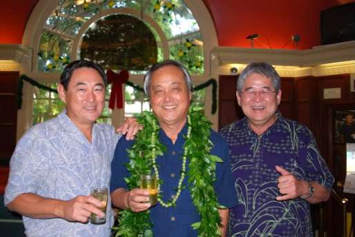 Arnold with pals Allan Ikawa and Derek Kurisu at the Book Launch Party.