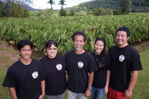 The Haraguchi family on their 50-acre taro farm in the Hanalei Valley (photo by Shuzo Ueomoto).