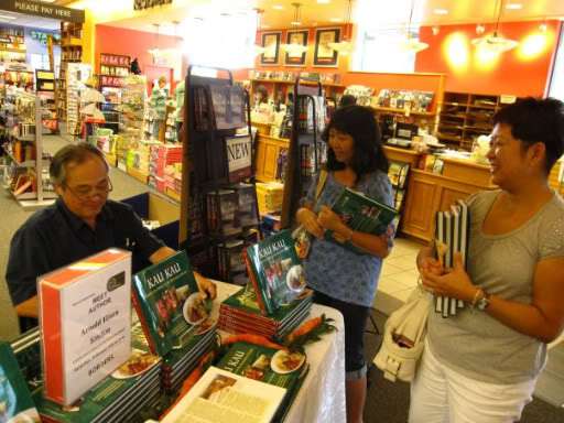 I was a little nervous about the booksignings at first because I didn’t know what to expect. However, the events so far have been a lot of fun. Depending on the island and store location, I’ve been surprised by friends, relatives and even some old classmates I haven’t seen in many years. In general, people are eager to talk about where they are from and what their favorite food memories might be. We offer a simple snack of saloon pilot crackers drizzled with sweet condensed cream as a lure for folks to step up to the table and chat. It’s kind of funny to hear the P.A. announcement at Borders announce the signing and describing the saloon pilot cracker/cream as “a special plantation dessert”!