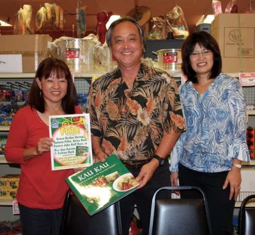 Arnold with Eloise (left) and friend, Michelle, at KTA Superstores booksigning, December 2009 (photo courtesy of Eloise Hiura).