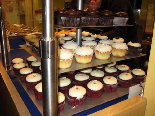 On a rainy Saturday, we headed over to Dupont Circle in D.C., to check out Hello Cupcake and Red Velvet. Never mind that it was almost impossible to find a parking space on the crowded streets of this area, that it was rainy and windy and we had to walk blocks and blocks to reach these places — no, never you mind. We did this all for YOU, after all, and you’re so worth it, right? Besides, it never hurts to burn a few calories before pigging out delicately tasting cupcake finery.☺
