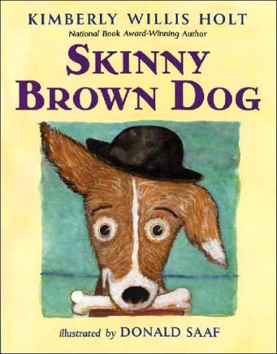 SKINNY BROWN DOG by Kimberly Willis Holt, pictures by Donald Saaf (Henry Holt, 2007). A truly heartwarming story about Benny the Baker (a polar bear who lives a simple life), and the skinny brown dog who shows up on his doorstep one day. Kind Benny feeds the dog, who despite his underfed appearance, sports a jaunty brown suit and black derby hat. The dog keeps returning to the bakery, even though Benny gently tells him “a bakery is no place for a dog,” and “you’re not my dog.” Benny continues to feed him, while the children who visit the bakery after school in hopes of free broken cookies eventually name the dog, “Brownie,” and hang around more often just to play with him.