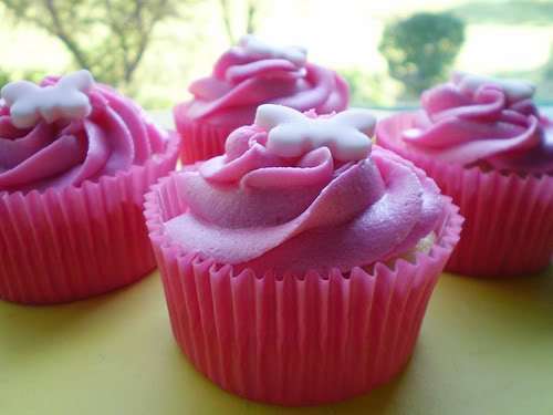 Pink Butterfly Cupcakes (vanillla with rose buttercream) by Twirlz Cupcakes.