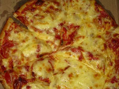 To go with the soup, some pizza with extra cheese, because at Caitlin’s house, Thursday night was pizza night.