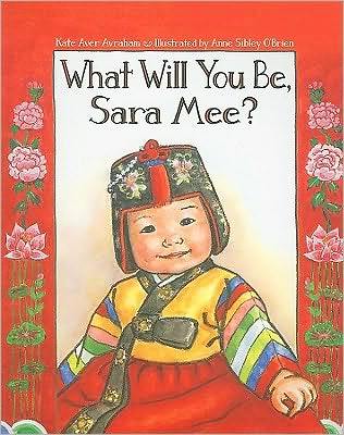 WHAT WILL YOU BE, SARA MEE? by Kate Aver Avraham, pictures by Anne Sibley O’Brien (Charlesbridge, 2010). A heartwarming story of Sara Mee’s tol (first-birthday celebration) — full of good food, presents, family, friends, and the highly anticipated game of toljabee, where Sara Mee’s future vocation will be predicted. The events of the day are enthusiastically described by Sara Mee’s big brother, Chong. As preparations commence and the guests arrive, speculation grows — will she be a soldier, artist, writer, cook, musician or seamstress? Finally, various objects are placed in front of her: a toy bow-and-arrow set, paintbrush, bag of gold coins, book, spoon, and some yarn. What does she reach for? Nicely paced and satisfying, with richly hued illos, a glossary and Author’s Note. Also includes mouthwatering mention of pulgogi, kimchi, and rice cakes! ☺