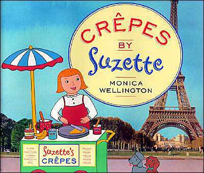 CRÊPES BY SUZETTE by Monica Wellington (Dutton, 2004). The most delicious way to tour Paree is by nibbling on a freshly made crêpe at every stop. In this cleverly conceived mixed media collage travelogue/homage, we follow Suzette as she sells her crêpes to people all over the city. The buyers all look a little “familiar,” having emerged from famous paintings by the likes of Chagall, Picasso, van Gogh, and Matisse. The illos, combining actual photographs of famous landmarks with Wellington’s simple juxtaposed drawings, are fun and interesting, and the back matter (Glossary of French Words, Notes on the Pictures, Painting IDs) complete this nice introduction to Paris. Also included is a great map documenting Suzette’s stops, and of course, there’s a recipe for Suzette’s Crêpes! Mmmmmmm.