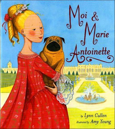 MOI & MARIE ANTOINETTE by Lynn Cullen, pictures by Amy Young (Bloomsbury, 2006). Marie Antoinette’s fascinating and oft misunderstood life comes off as sheer delight with her pug Sébastien calling the shots. Complete with witty observations and unabashed praise of his own irresistible perfection, Sébastian takes us through Antoinette’s early years in Austria, her arrival at Versailles and marriage to Louis XVI, to the birth of her own children.