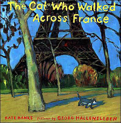THE CAT WHO WALKED ACROSS FRANCE by Kate Banks, pictures by Georg Hallensleben (FSG, 2004). A beautiful, lyrical story about a displaced cat whose only wish is to return to the “old stone house by the edge of the sea.” For many years he lived a quiet life there with the old woman, chasing “the wind that scuttled through the garden,” watching “the birds that flitter from tree to tree.” But when the old woman dies, the cat is packed up with the rest of her belongings and shipped north to the village where she was born.