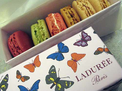 But “macs,” as they are affectionately called, are so much more than pretty, elegant cookies served with coffee, tea or champagne. Not only are they challenging the cupcake’s popularity as favorite hand-held sweet among foodies in this country, but in Paris they are serious status symbols. In his cheeky blog post, French sommelier Olivier Magny calls the macaron “a key social lubricant in Paris.” Strong stuff for such a little cookie. “While most Parisians have given up on ancestral guilty pleasures (sex, drugs, alcohol), very few will say no to the modern form of socially acceptable vice: Le Macaron Ladurée.”