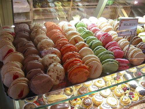 As with most things culinary, the French took the simple almond flour, egg white and sugar confection to new heights, serving them in the 19th century with spices, jams and liqueurs, and then in the 20th century, inventing the sandwich cookie we know today. Credit goes to Pierre Desfontaines of the famous pâtisserie Ladurée, who took two of these meringue discs and filled them with chocolate ganache. Ever since, French pastry chefs have taken great pride in creating new flavor combinations, moving beyond the standard vanilla, chocolate and raspberry, to exotic delights such as matcha tea, rose, mango, and passionate fruit. Today, if you visit most any Paris pâtisserie, you will find trays and trays of marvelous macarons, with fillings made from ganache, buttercream, and various jams.