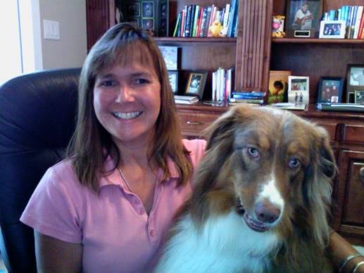 Pedro is a three-year-old red-tri Australian Shepherd who “guards” my office when I’m writing. He is also certain that I vacuum for his enjoyment. He’s so very cool — so his only message is “Yo!” 🙂