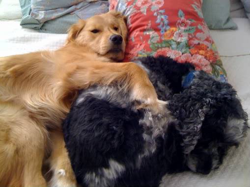 Ruby is a 15-month-old golden retriever. Her brother, Matty, is a 10-year-old English cocker spaniel.