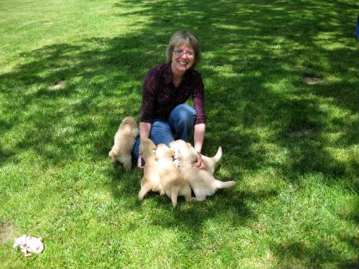 She loves to learn and has a vocabulary of about 75 words right now. It’s growing all the time. We have to spell certain words (cheese, treat, cookie, bully, ride), if we don’t want her to get the wrong idea. She takes 8 pills a day, but for her she thinks it’s all part of training since I wrap the pills in cheese and make her do tricks for her medicine. She’s very good at telling time. She knows she gets some pills at noon, so she comes and pokes me around noontime to remind me. She’s fascinated by things that fly and will follow birds and bees all over the yard, but her favorite thing to watch is an airplane. While she enjoys the occasional nose-to-nose sniff with other dogs, what she really loves is people. Every time a doorbell rings she is sure that whoever is on the other side has come just to see her.