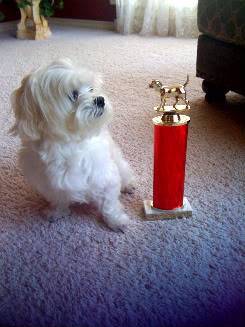 *Snowball won second place “Best Trick” trophy in the 2005 Edmond Parks and Recreation Kids Dog Show by giving my daughter a high five on command. He was beat out by a yorkie that jumped through a hoop while sporting an ill-fitting tutu.