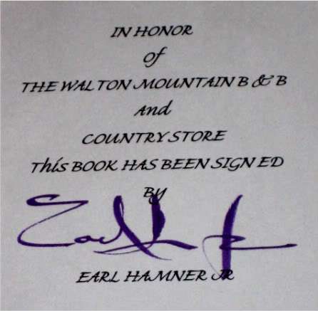 ♥ You can purchase autographed copies of several of Earl Hamner’s books via his official website. Also, don’t miss reading this article about the Hamner family by George Brosi, to learn all about Earl Jr.’s parents and his seven brothers and sisters (there were actually 8 Hamner children, not 7, as in the TV series).