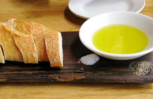 her bread in the oil on my plate; I know
