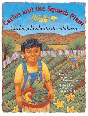 CARLOS AND THE SQUASH PLANT by Jan Romero Stevens, pictures by Jeanne Arnold (Rising Moon, 1993). Carlos enjoys tending the vegetable garden alongside his brother and father on their New Mexico farm, where they grow watermelons, sweet corn, tomatoes, small green chiles, and his favorite vegetable, squash. He likes squash because his mother uses it to make a spicy dish he likes called calabacitas.