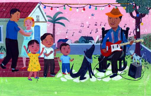 GRACIAS: THANKS by Pat Mora, pictures by John Parra (Lee & Low, 2009). In this charming bilingual book, a multiracial boy lists some of the things he is most thankful for: “For the sun that wakes me up so I don’t sleep for years and years and grow a long, white beard, thanks . . . For the bees that didn’t sting me and turn me into a pincushion, thanks. . . For the music of my uncle and his guitar that turns our dogs into howling singers, thanks.”