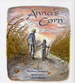 ANNA’S CORN by Barbara Santucci, pictures by Lloyd Bloom (Eerdman’s BFYR, 2002). Anna and Grandpa share a special bond, and enjoy walking together through the cornfields. Grandpa teaches Anna how to be still and cup her hand behind her ear, so she can hear the music of the corn. As the wind breathes through the dried corn stalks, Anna hears a whisper, then a raspy sound, a crackle which reminds her of Grandpa’s voice.