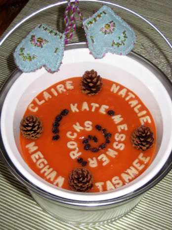 Now, please join me in congratulating Kate. Grab a big spoon because the alphabet soup kitchen helpers are serving today’s soup in their version of a sap bucket. Imagine being outdoors on a wintry day and discovering a bucket full of warm soup nailed to a tree! Slurp loudly and eat hearty. Let’s all thank Kate for writing this fabulous book!