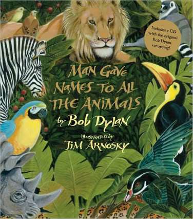 Arnosky, himself a long-time Dylan admirer, says in his intro, “From the first time I heard it, the lyrics created pictures in my mind of a land of primeval beauty, where the sky and earth were new, where plants first grew, and the animals knew no fear. I thought this vision would make a dream of a book, and I asked Bob Dylan’s permission to make this dream come true. Happily, he said yes.”
