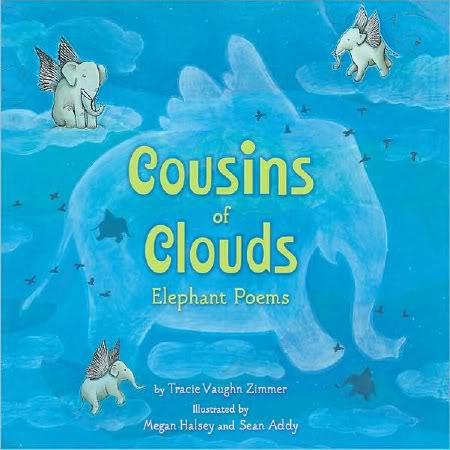 What is it about April? So many cool poets have birthdays this month. Yesterday was April Halprin Wayland’s birthday, and Kelly Fineman’s was on the First. They all just happen to be in very good company: Shakespeare, Wordsworth, Gary Soto, Seamus Heaney, Lee Bennett Hopkins. And while we’re celebrating notable events, let’s tip our hats to Tracie for the recent release of Cousins of Clouds: Elephant Poems (Clarion, 2011), which is absolutely gorgeous!