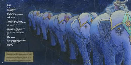 Tracie: I saw a program about urban elephants on PBS (of that title, I believe) and really fell in love with their majesty and plight. From there I just started reading everything I could get my hands on about them. When I first tried to start writing about them in poems they were heavy and clunky, because I was trying to stuff WAY too much information into each poem. When I finally found the non-fiction sidebar format (THANK YOU, Joyce Sidman) then it seemed to fall together. This, of course, after dozens of revisions. Children seemed so much more connected to animals than most adults (my daughter, especially) and I’m thrilled to share this collection with young readers (and like-minded adults, too).