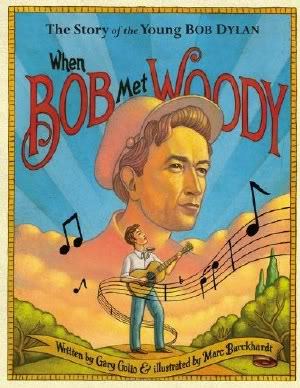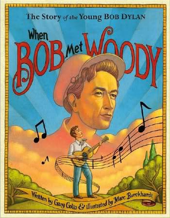 We could celebrate by listening to 70 of our favorite Dylan songs, singing “Like a Rolling Stone” seventy times, or by letting out 70 WooHoo’s! for this brand new picture book biography, When Bob Met Woody: The Story of the Young Bob Dylan (Little, Brown, 2011). (I vote for all of the above.)