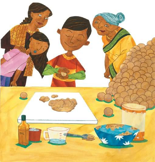 Cool themes: Multicultural family, grandparents, cooking, East Indian culture, independence, tall tales, humor.