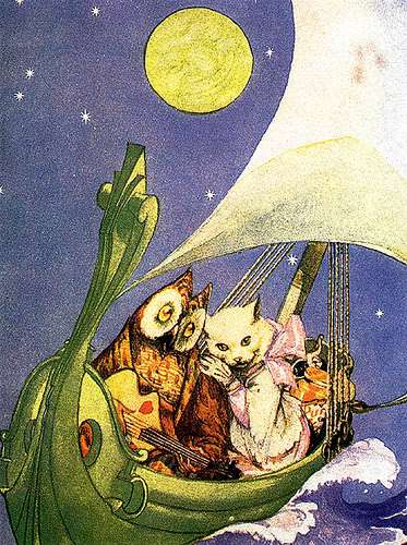 The owl and the pussycat went to sea / in a beautiful pea-green boat,