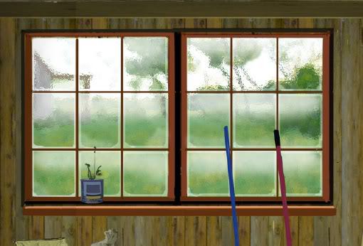 I found some nice window frames on the web, but I wanted the view outside to be authentic to Ree’s prairie. On her site, I found this pic of the prairie behind Charlie. But Charlie was in the way.
