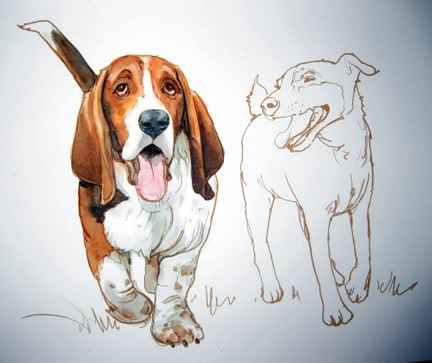 No dogs. No pets. I treated Charlie the same way I would have drawn an opossum. A smile and expressive eyes go a long way to make animals anthropormorphic. And Charlie is a great character even without my help!