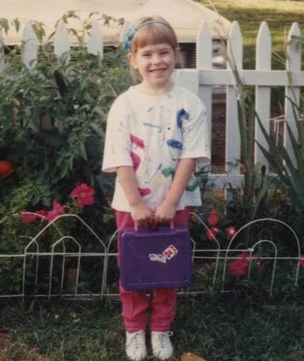 JULIA: I LOVED clothes as a kid, and I was really picky about them which drove my mother nuts. I had a t-shirt in the 80’s I was ESPECIALLY proud of because of the paint splatters, spray paint squiggles and sewn-on sequins . . . WAY rad in 1988. Here it is on the first day of first grade: