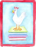 I learned it was written by Susan Thomsen, who once worked for the New Yorker, published this most excellent article about Poetry Friday with the Poetry Foundation, and eventually went on to also blog for PBS Parents’ Booklights. And yes, dang it, she lived with two chickens (and two cats and a snake)!