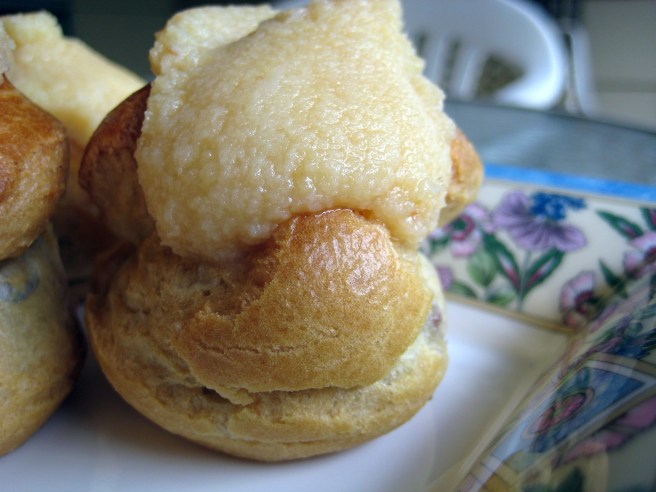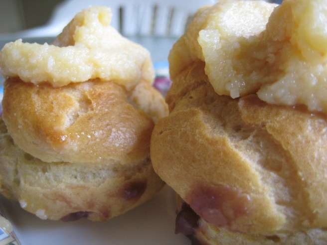 Boy, do those bring back memories of my mom’s cream puffs (but Mom’s were very tasty, not meh at all). So sorry they were disappointing. I think I’d go for the blueberry scone next time — that looked pretty darn good.