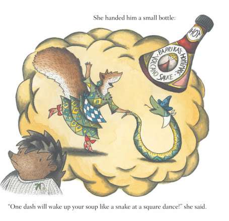 It’s lots of fun — not every day you get clothespins, figs, maracas and Volcano hot sauce in the same book. And the all-important soup, of course. 🙂