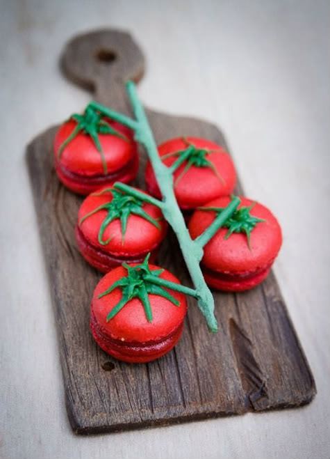 or tomato macarons (Paprika planted “a bazillion” cherry tomatoes near C.R. Mudgeon’s door):
