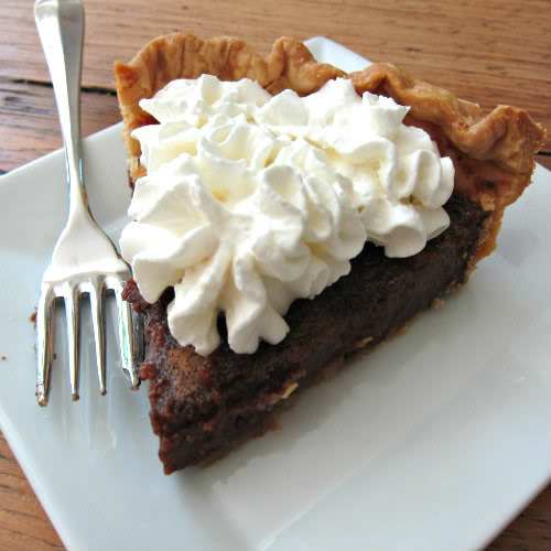 Jama’s note: I made this pie a few days ago using Scharffen Berger cocoa. Hello! Deeply yummy. I think cutting back on the sugar to 1 cup is a good idea. Should also mention that I made it because Greg twisted my arm is so rich, he paid me to do it. Poets do make piles of money, you know. Check it: