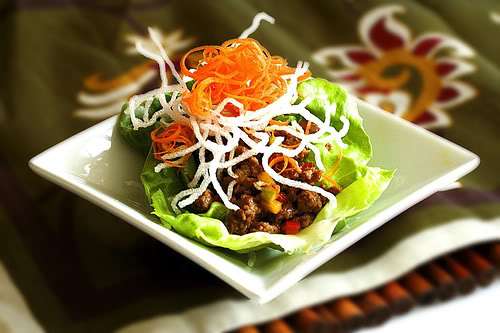 Lettuce wraps are perfect for warm summer days, a light fusion food with endless possibilities that’s especially good if you’re into low-carb or gluten-free. It’s all about blending a cool refreshing shell with a savory/spicy filling. If you can eat it, you can wrap it.