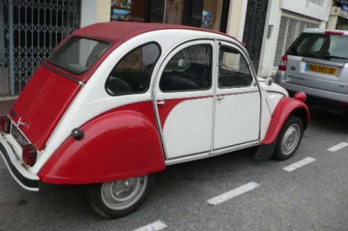 Great 2-CV car you have there with the red and white paint job! My mom used to have one that was a petroleum blue– not as fun. I have to see more of the French pictures…