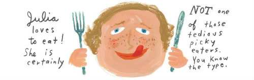 Bon Appétit! is brimming with the kind of specific, quirky details kids love (size 12 shoes! jelly doughnut! cleaning a pig’s ears and teeth!). Please share a favorite/funny/surprising anecdote about Julia that didn’t make it into the book.