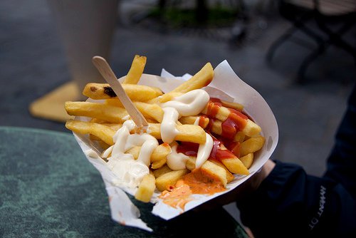 The best fries I’ve ever had in my life were in Brussels. Didn’t learn til years later that french fries supposedly originated in Belgium. You get them in a paper cone and top them with mayo and curry-ketchup. A meal in itself! (via Ash226)